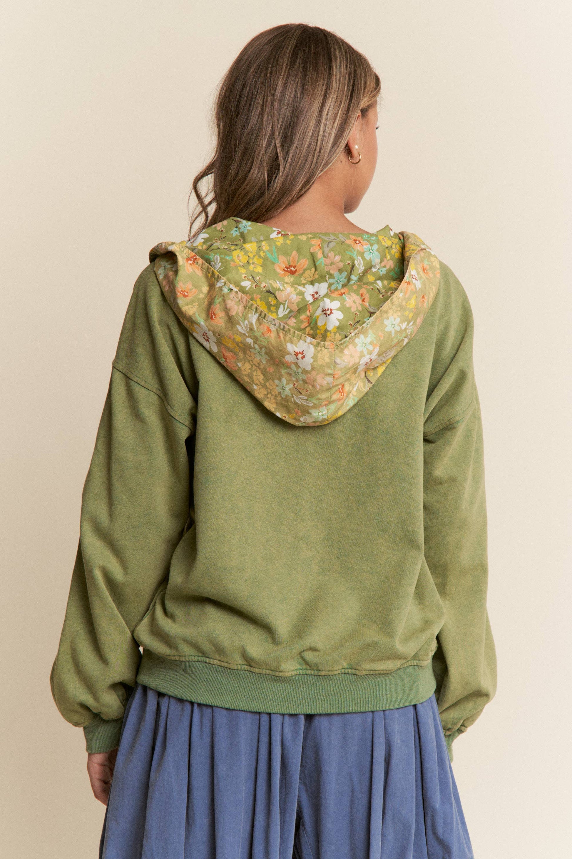 Mineral Washed Floral Print Hooded Pull-Over S-L/1X-3X