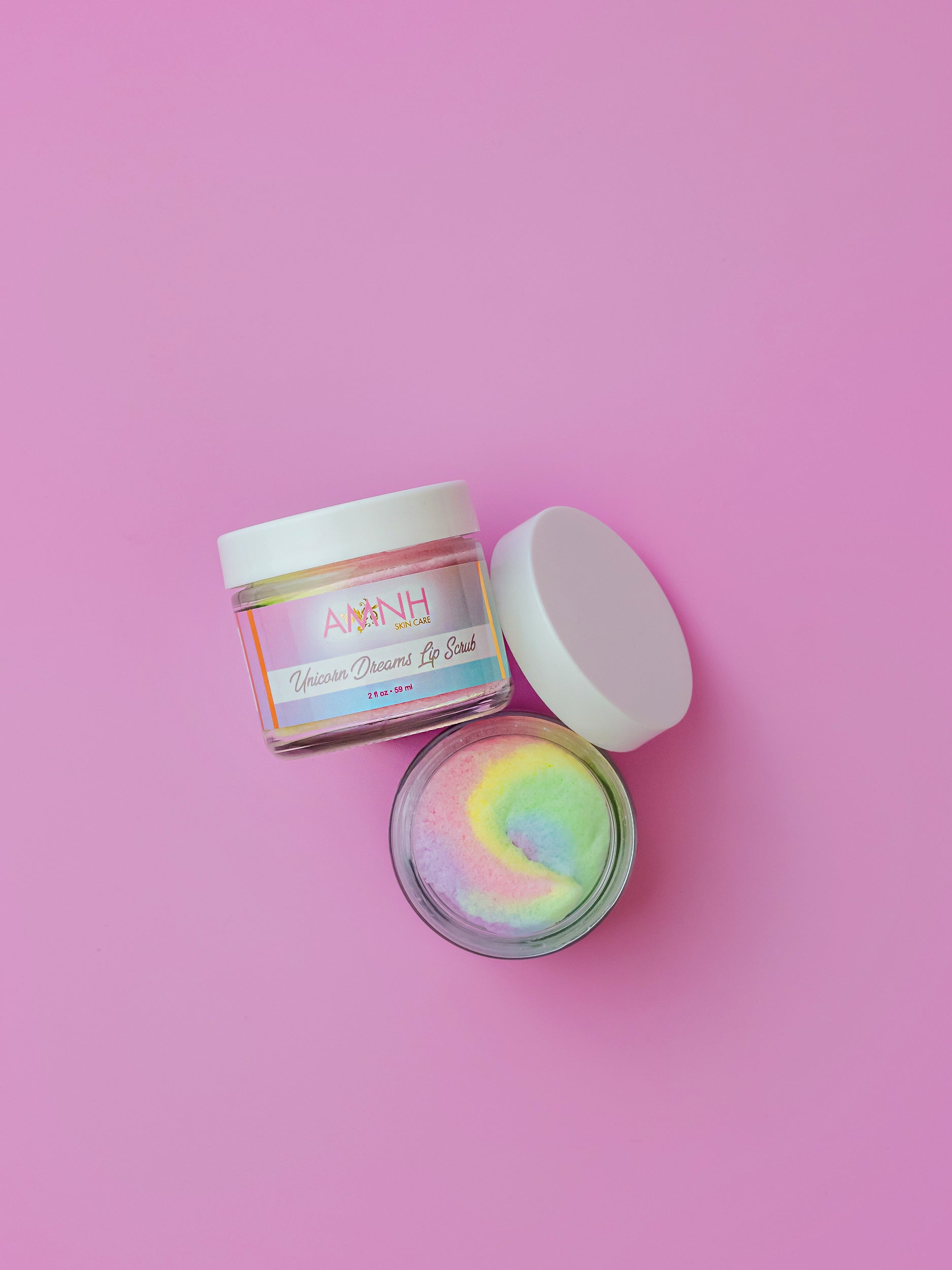 Unicorn Dreams Lip Scrub is a sweet, dreamy treat for your lips, designed to gently exfoliate, soften, and smooth. Made with organic, all-natural, and lip-safe ingredients, this scrub buffs away dryness while deeply nourishing for irresistibly kissable lips. With a scent just like pink sugar and cotton candy, it’s pure magic in a jar.